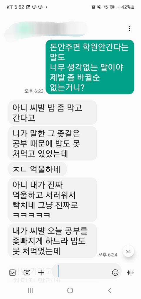 돈안주면 부모한테 욕하며 사는 사람 없다☞맞음. 근데 밥안먹었다는데 어느 부모가 '그냥 (학원)갔으면 좋겠어'라고함? 자식 배고픈거 외면하는 부모도 없음.