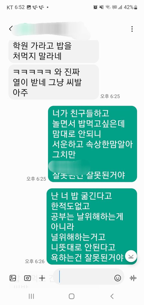 학원가는길에 친구랑 밥먹는거가지고 '친구들하고 놀면서 밥먹고싶은데 맘대로 안되니 서운하고 속상한맘 알아' 비아냥봐. 설사 친구들이랑 논다해도 만원으로 뭐 대단한걸 하겠으며 학원가는길에 대체 뭐가 논다는 건지???