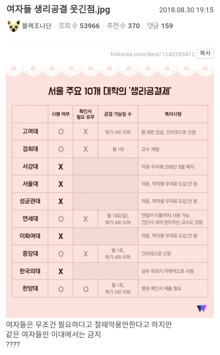 -한국외대 : 생리공결제 시행