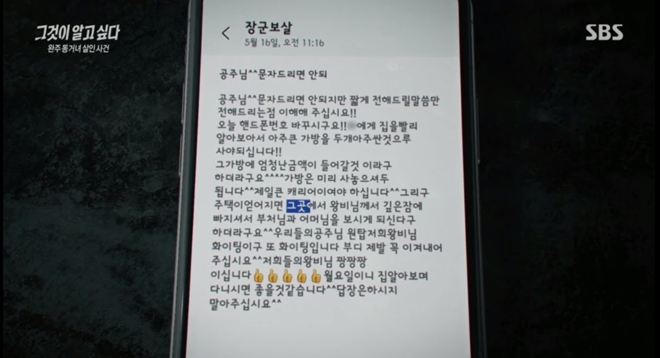 -의심을 피하기 위해 진*수와 같이있을때 장군보살의 문자가 온다든지, 다른사람을 세워 장군보살과 만났다고함