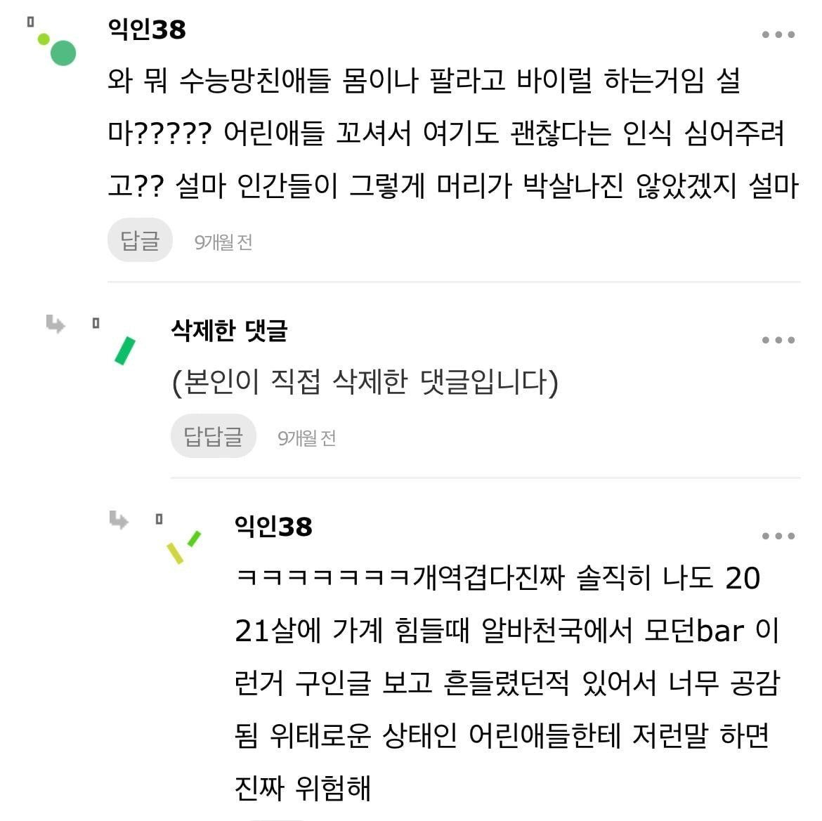 | "한국여자들 불쌍해. 아기는 항상 여자가 안고다니고 왜 애들밥은 항상 여자들만 먹이지? 한국남자덜 이기적이야" (0) | 2022.04.11 |