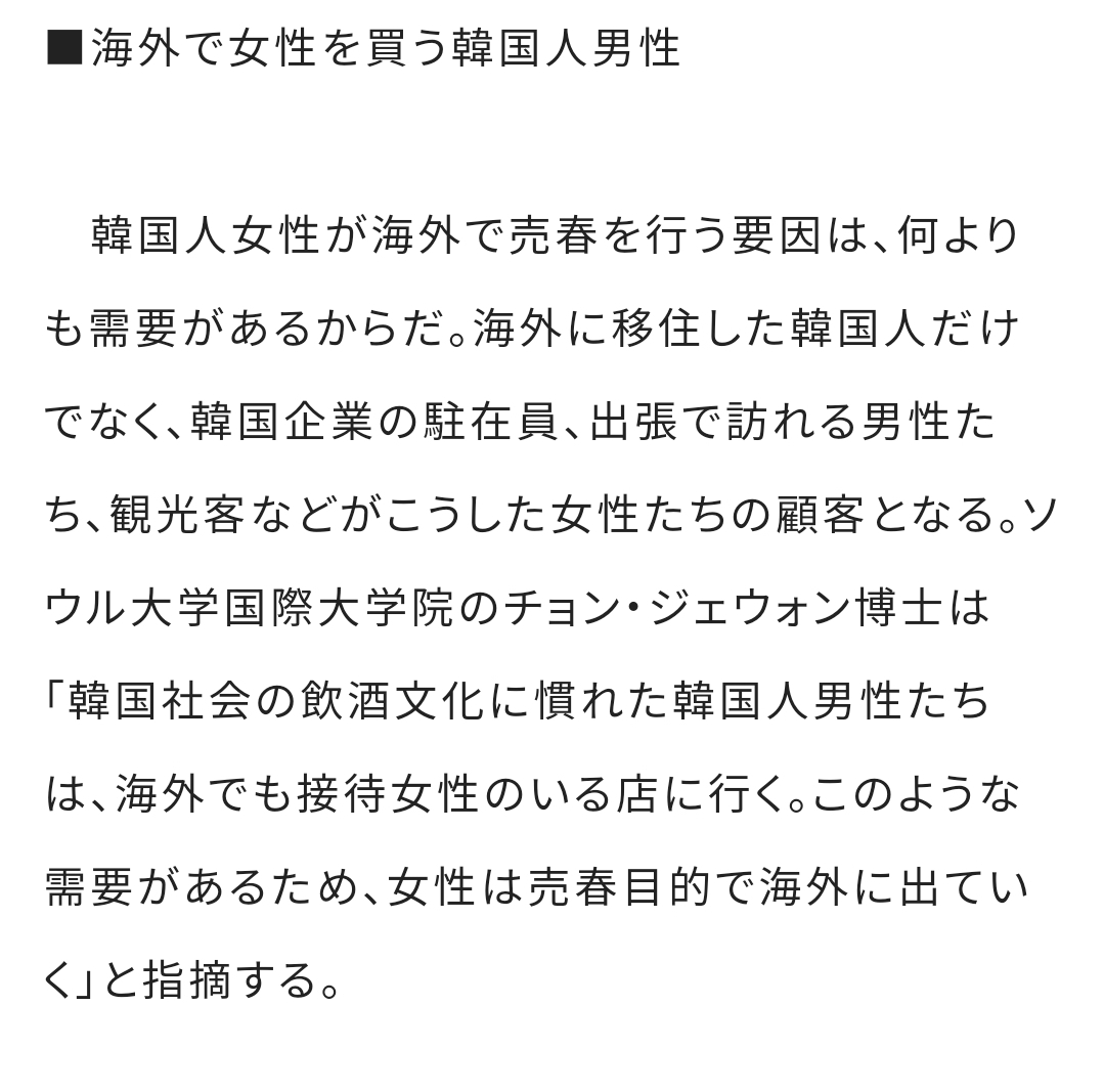 애초에 [인신매매 피해자 보고서]에서 피해자 조사 체류비자를 국가별 성매매 여성 현황으로 둔갑시키는 조선일보 오보는 일본판으로도 제공되기 때문에 일본 우익의 반한 먹이감으로 뚝딱 재생산된다. 아 물론 한국남성의 성매매도 같이 '평등하게' 난타중.