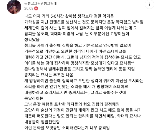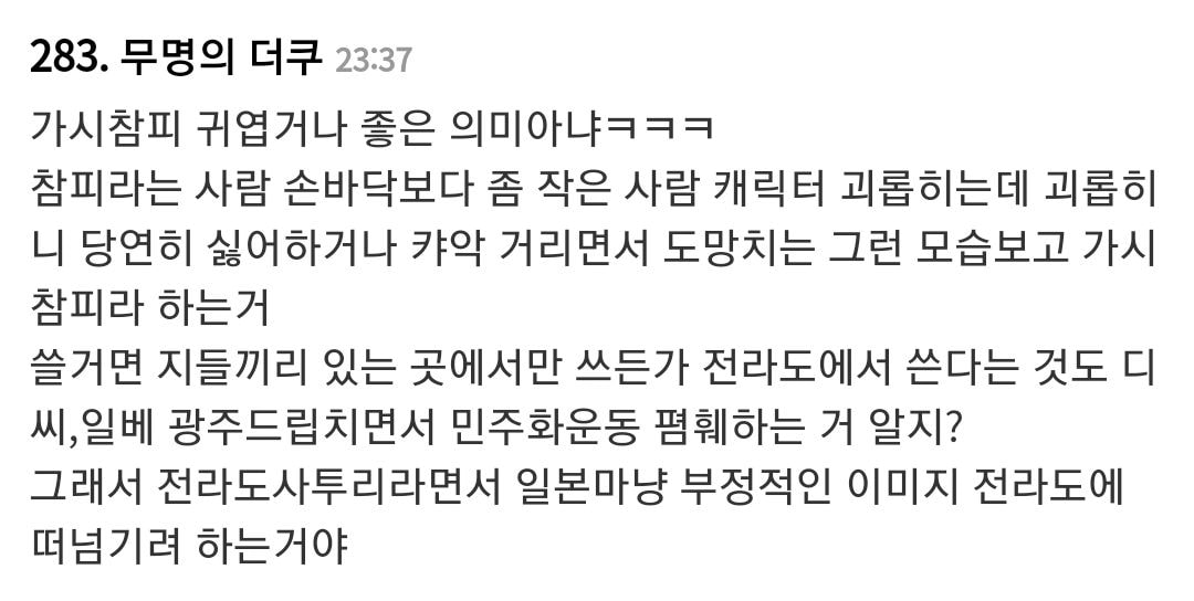 남초에선 이미 수십년전 부터 지들끼리 시시덕거렸던 학대 캐릭터 참피