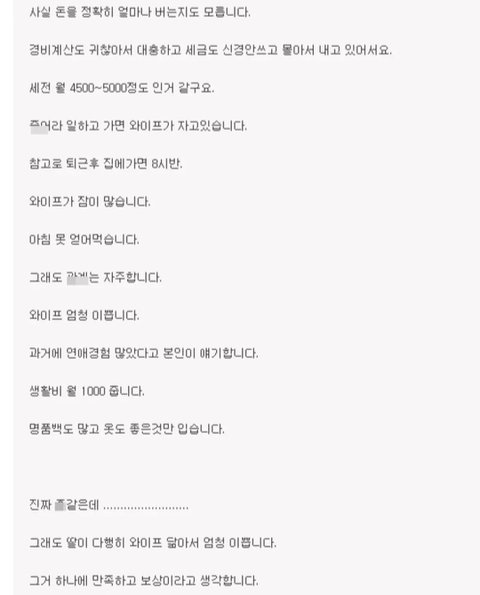 좋은부모만나 잘살아온 남편 저희 시어머니 도우미쓰시고 평생좋은거누리고 편하게 사시는거 보고커서 아내도 당연히 누리며 살아야하는줄알아요 본일벌어 가족들 쓰는거 전혀 아까워하지않고 본인이 능력좋아서 아내랑 아이들이 누리는 삶을 자랑스러워해요