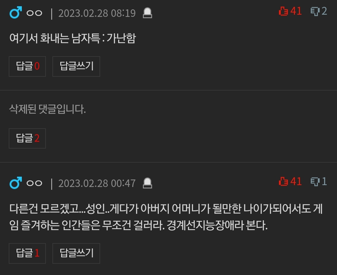여기서 발작하는 가난남들이 이 글이 맞단거 증명해줌. 파란마크 달려도 상관없는 남자들은 맞말이라면서 웃고 있는데 ㅋㅋ