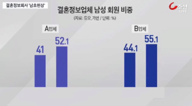 2030 성비가 이미 120만명 차이 나는 이상 [솔로대첩], [데이팅어플] 등 모든 연애관련 사업이 남초인것은 인구수의 결과다. 결혼에 관심있는 1%만 가입해도 남성이 더 많으니 결정사 남초화도 당연지사.