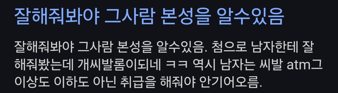 요즘 심심찮게 발견하는 남자한테 잘해줘 보고 본성을 확인하라는 글