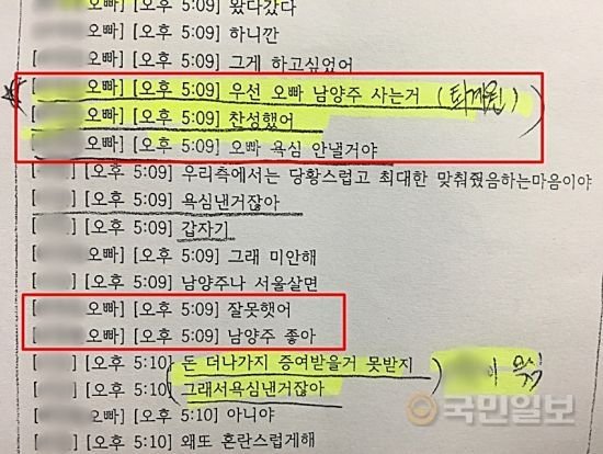 위 사항이 대략적은 설명이며, 사실 관계를 입증할 카톡 내용, 전화 통화기록등은 관련기관에 제출하겠습니다.