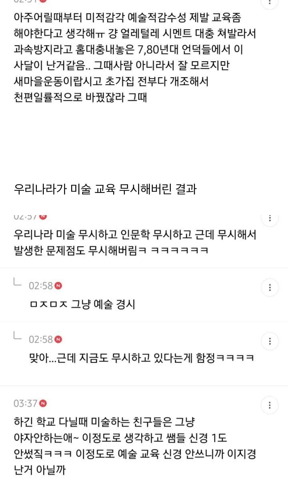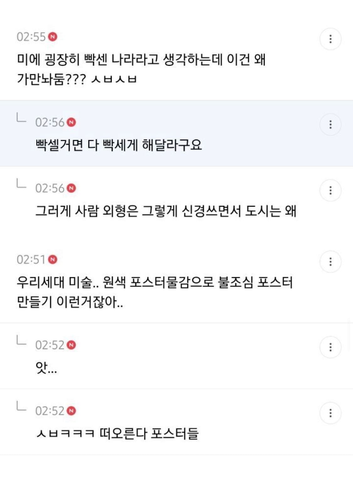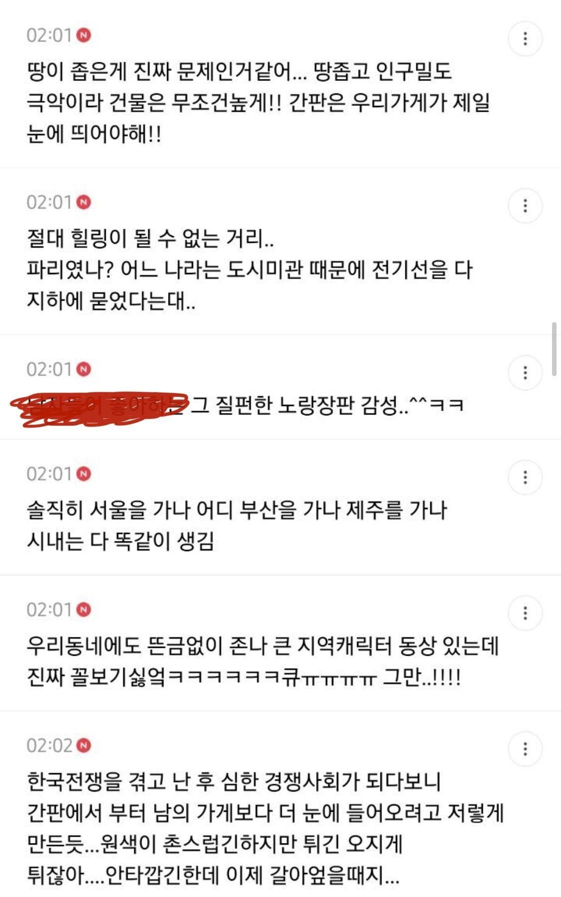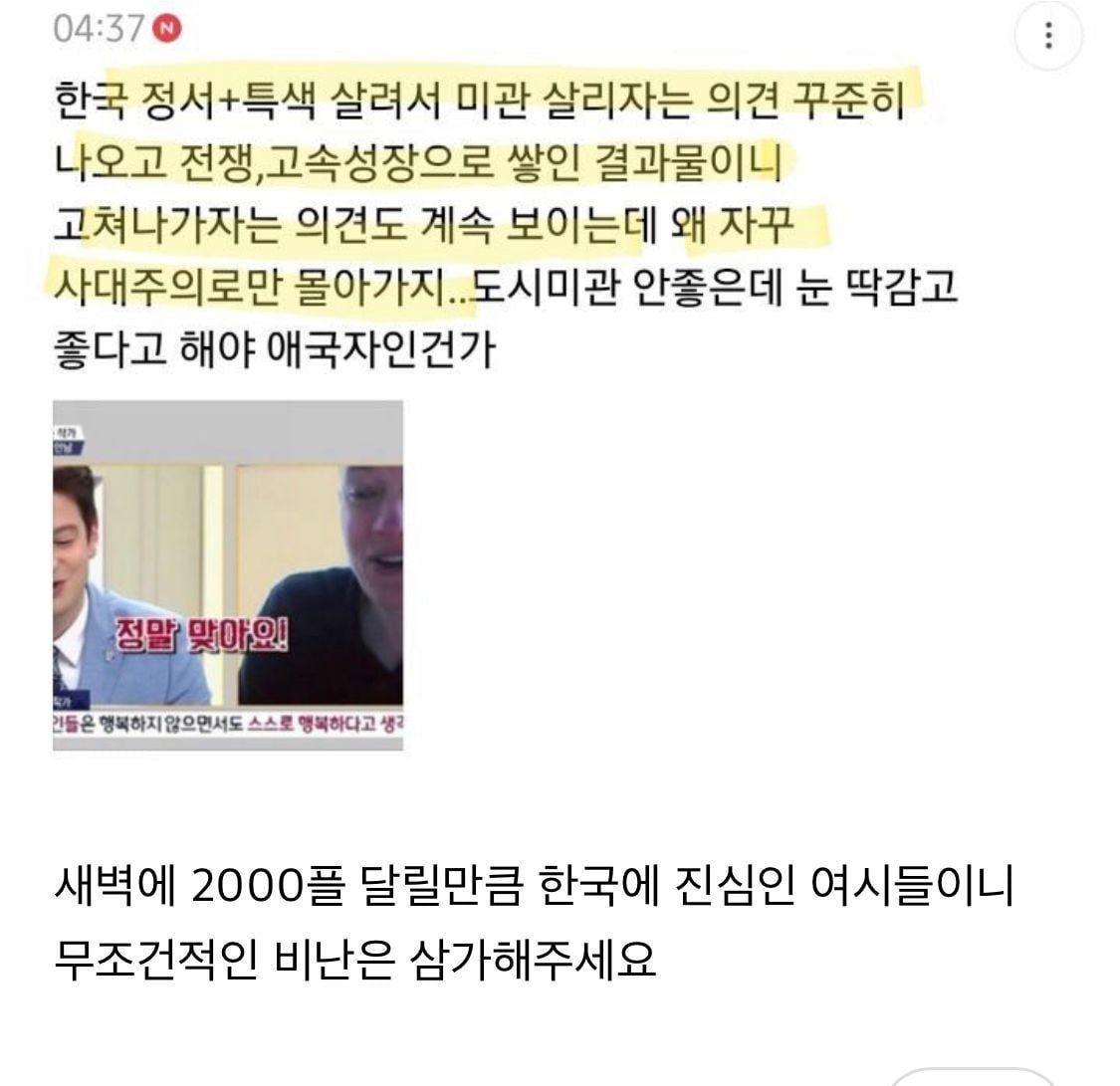 커뮤니티발 한국의 도시미관에 대해 성토글에서 커뮤에서 단순히 유행이나 관심사에서 사회문제로까지 집단지성하기 시작했음을 알 수 있다.