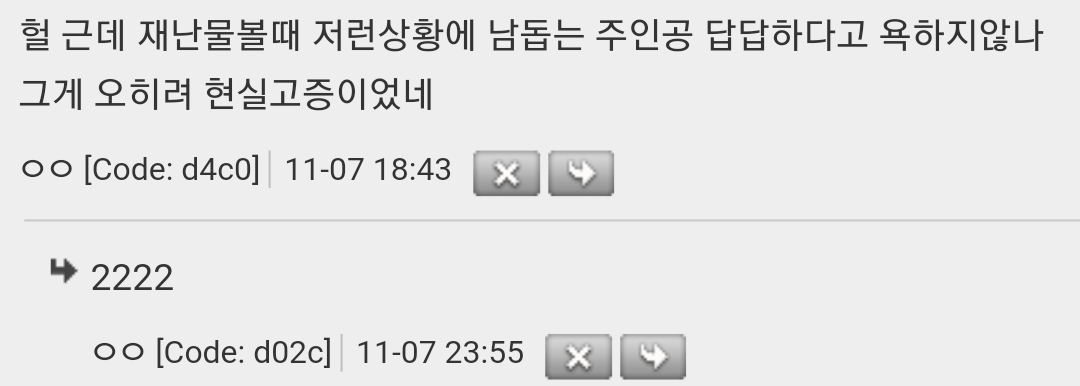 알고보면 욕심많고 이기적이고 뭐 그런 거 굳이 드라마로 안봐도 알지. 난 그런 장면들이 좋더라. 투모로우에서 자기가 얼어죽더라도 도서관에 보관된 장서는 절대로 태울 수 없다고 버티는 장면. 사람이 사람답기가 얼마나 힘든데 굳이 본성이 어떻고 하는 이야기가 이젠 더 뻔해보여.