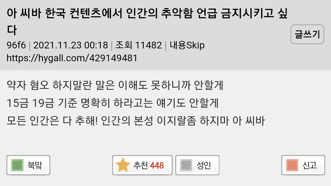 D.P, 인간수업, 스위트홈부터 오징어게임까지 전부 비슷하게 공유하는 단점들이 있는데 나는 이 일관됨이 넷플 코리아의 톤앤매너를 노골적으로 보여준다고 생각하거든. 필드에서 넷플이랑 일할 정도의 "고급인력"들이 생각하는 트렌디함이 그냥 이 정도 수준인거 너무 잘알지 ㅋㅋㅋ 그래서 짜증나고