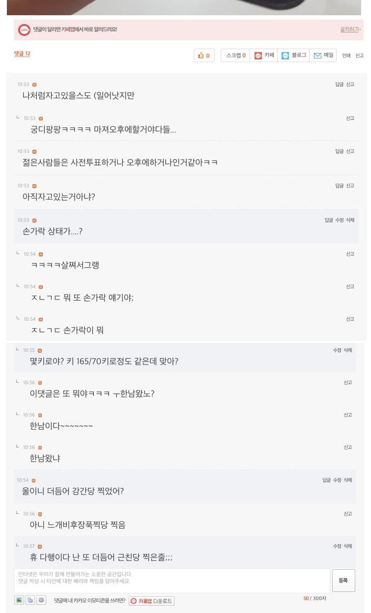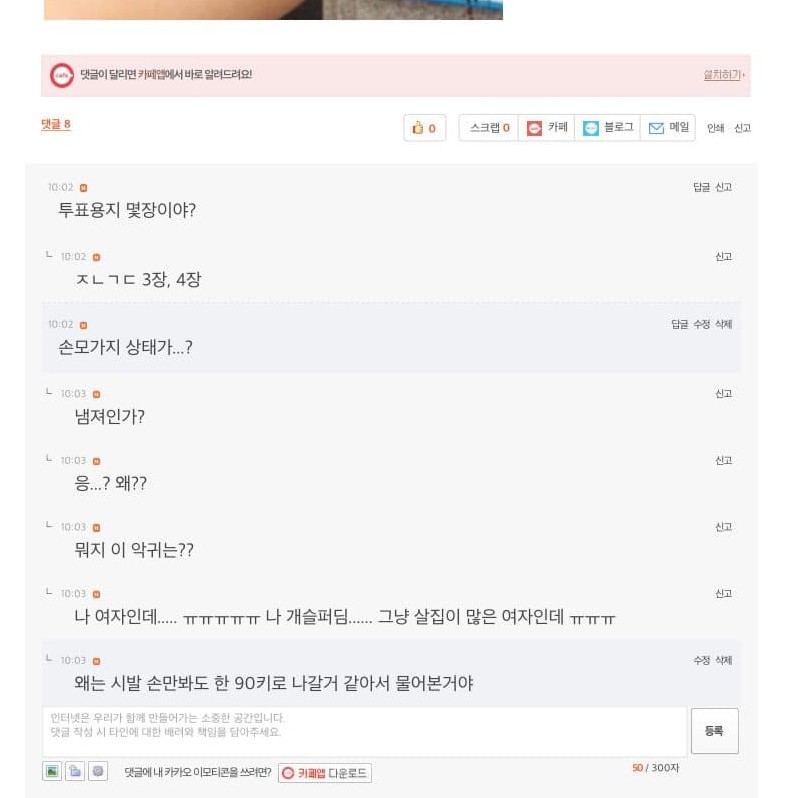 한남 특유의 의도(투표독려)와 무관한 품평질과 외모가 별로면 타인에 대한 인신공격이 가능한줄 아는 무례+상스러운 말투
