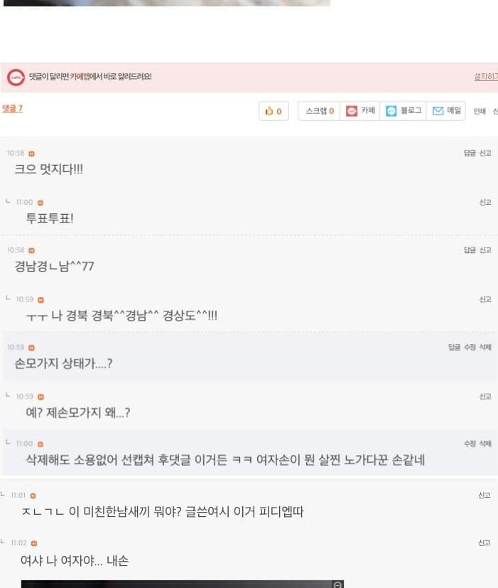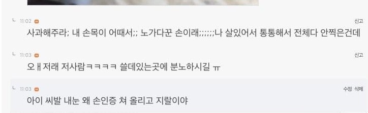한남 "삭제해도 소용없어 선캡쳐 후댓글 이거든 ㅋㅋ 여자손이 뭔 살찐 노가다꾼 손같네"