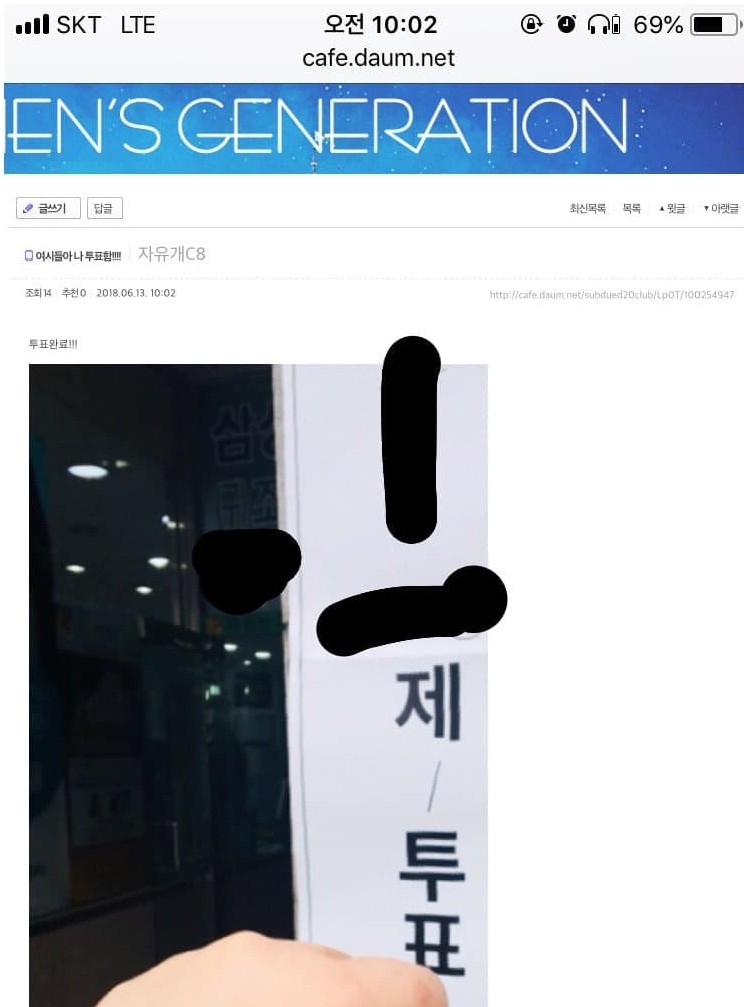 2018년 투표인증샷을 2021대선인양 남초에 바이럴중.